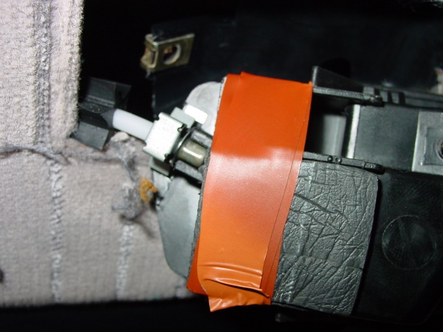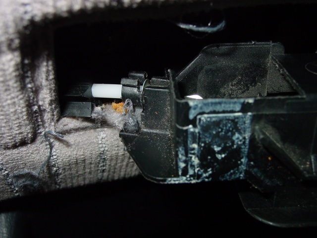 Hier ist die Metallklammer zu sehen die das ganze verhindert. Beim Wiedereinbau sollte man nicht vergessen das Schaumstoff wieder einzubauen, als Sicherung gegen rausfallen einfach ein wenig Isoband drumherum.